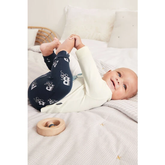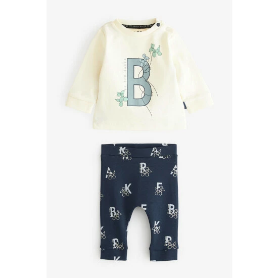 Comfy sweater and legging set, with signature ‘B’ design, set on a cream base sweater. Branded print leggings set on a navy base.