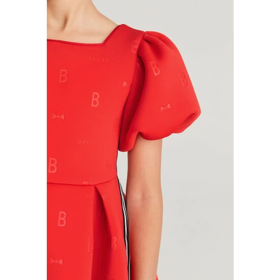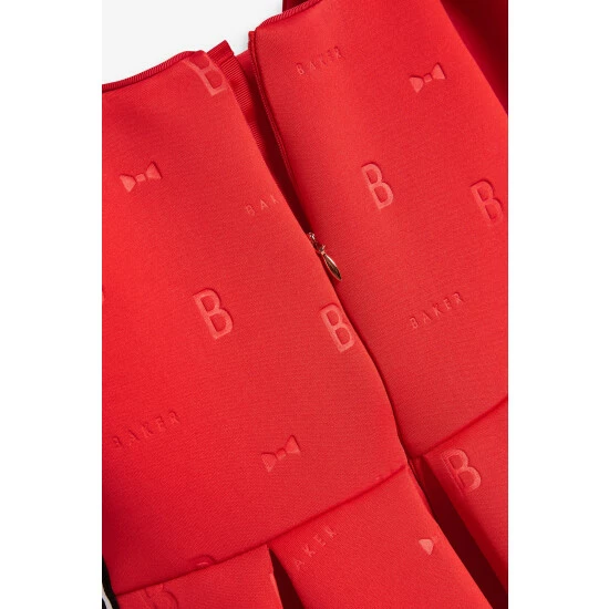 In a gorgeous scuba fabric, this statement-making dress from Baker by Ted Baker is designed with pretty frill sleeves and signature Baker branding. Perfect for twirling!