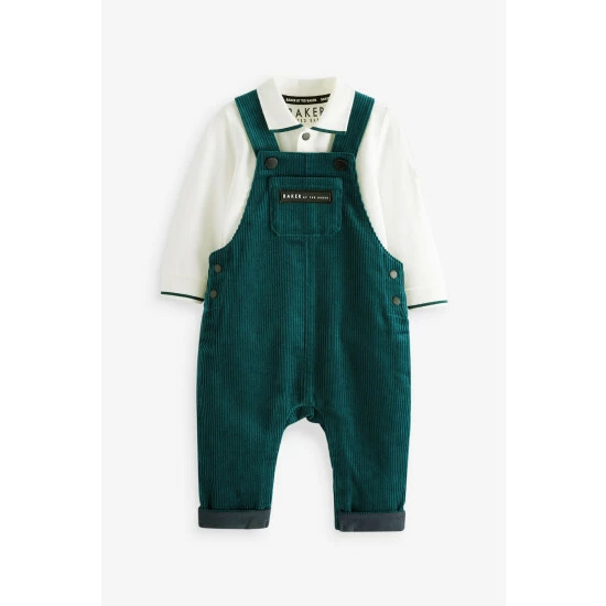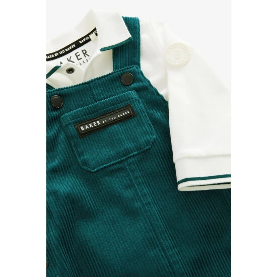 This adorable co-ord from Baker by Ted Baker is a lovely smart set for a special occasion. The set features a polo with green edge detailing on the collar and cuffs with branded popper fastening while the matching dungarees are made from a soft green corduroy with a branded badge on the front pocket.
