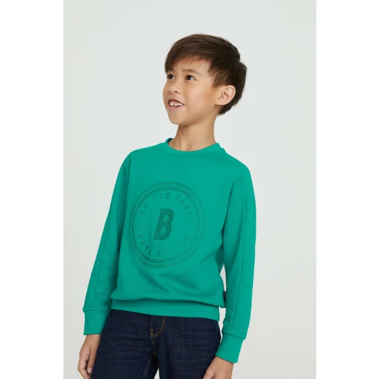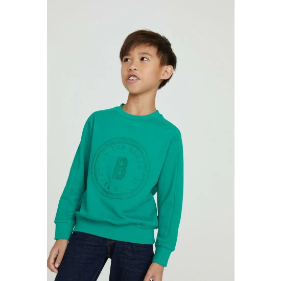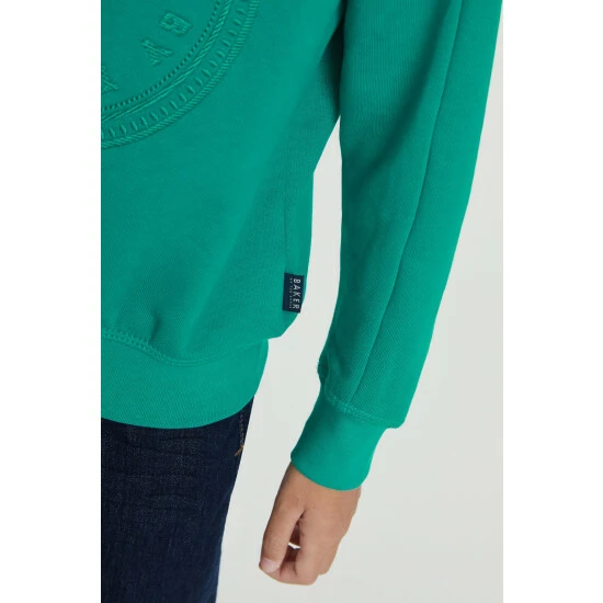 This vibrant green crew neck sweatshirt from Baker by Ted Baker is made from the comfiest cotton jersey fabric. With chunky rib cuffs and hem, this super cool sweatshirt has a slightly oversized fit to maximise layering potential. With subtle panel seam detail along the shoulders and sleeves, it has embroidered branding to the front and woven seam tab.