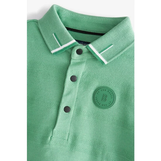 Build on their classics for the season ahead with this boys’ polo shirt from Baker by Ted Baker. With all the classic features they love, it has a neat 3 snap fastening at the collar, short sleeves and is made from a luxe textured cotton that makes this t-shirt lightweight and breathable. With white and green tipping at the collar and sleeves, the Ted Baker badge is positioned at the chest, and woven tab sits at the side seam.