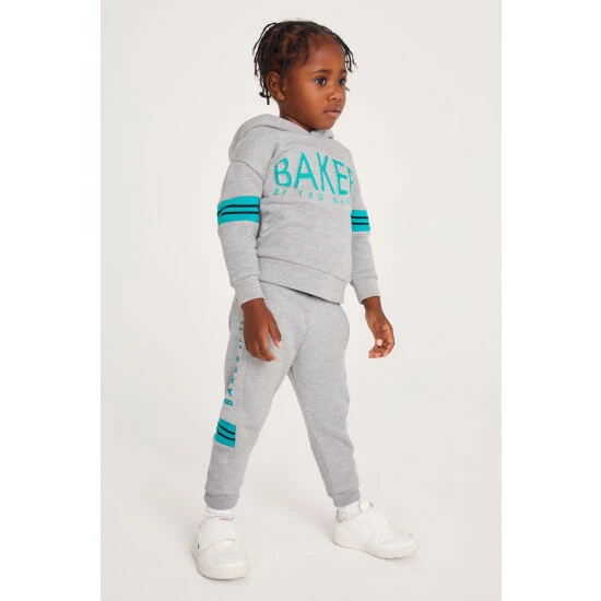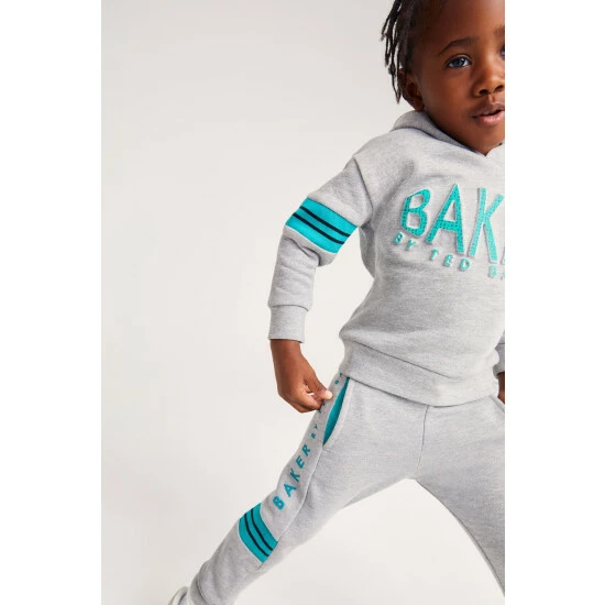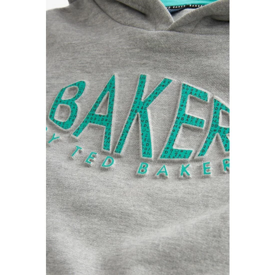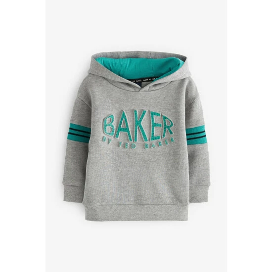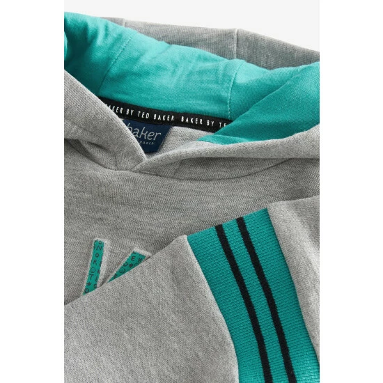 A staple style with an elevated finish, this grey hoodie from Baker by Ted Baker is crafted in a soft cotton blend. With a raised logo on the front, it has a blue lined hood and stripe detailing on the sleeves.