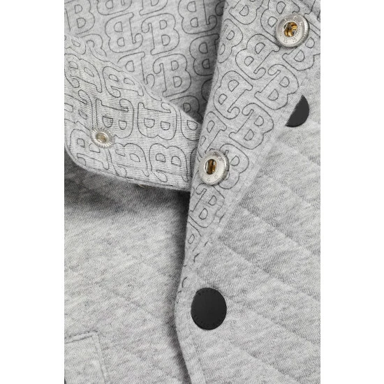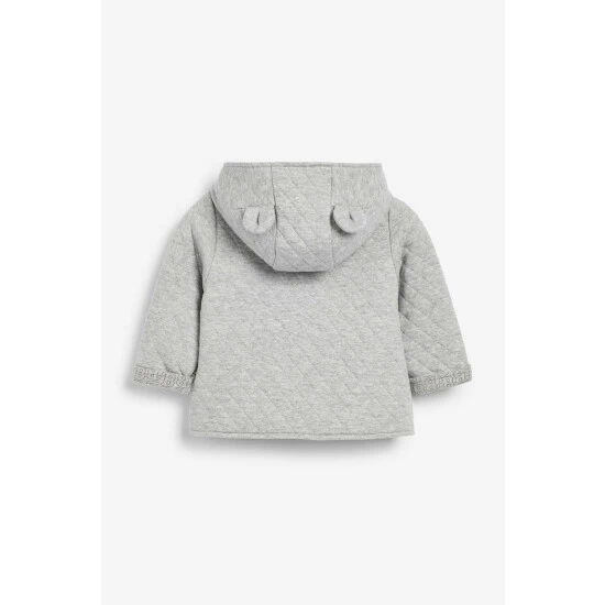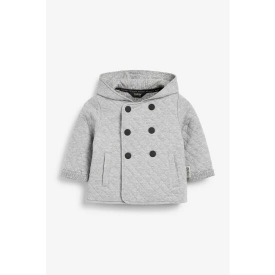 Elevate their outerwear with this double-breasted grey jacket crafted in a soft and cosy, quilted fabric. Featuring ears on the hood that adds a fun vibe to a classic style.