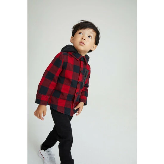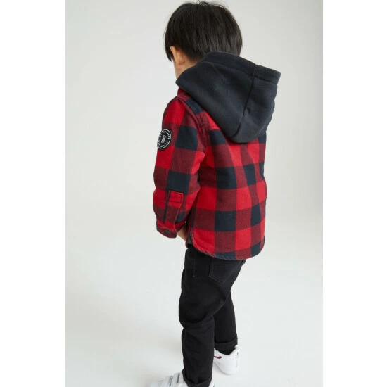 This check shacket from Baker by Ted Baker is perfect for their mid-season wardrobe. Made from a super soft cotton this jacket features branded patch pockets to the front and a curved hem. With a cosy hoodie layer to keep out the cold, this is a go-to layering piece for the season ahead.