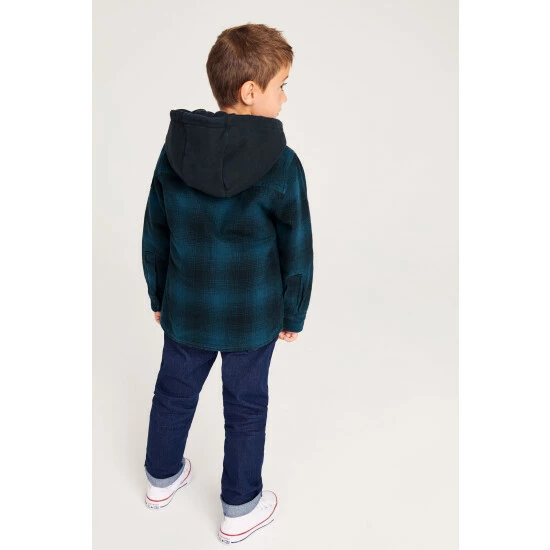 From Ted Baker, this check shacket is made in a soft cotton with a warm wadding. With a fixed hood and smart collar, it features press stud fastenings through the front and a branded zip pocket on the chest.