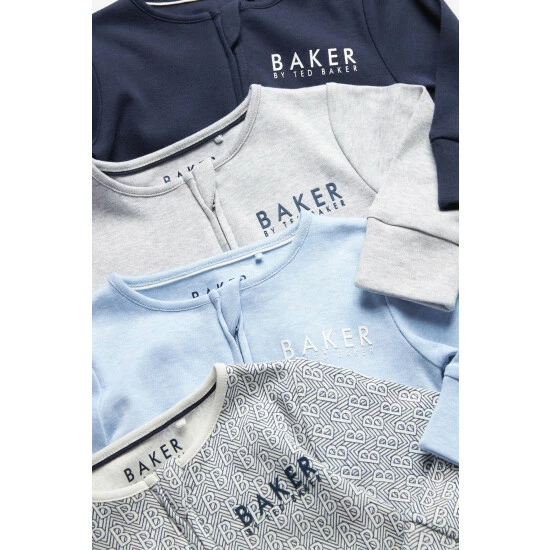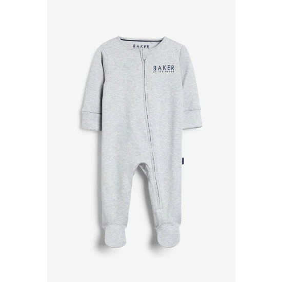 These cosy sleepsuits from Baker by Ted Baker make the perfect gift for a newborn. Made from supremely soft cotton jersey, there’s 4 in the pack which includes 3 plains in a soft marl finish and one print. With a full length zip for easy changing, each suit has grown on feet and a zip chin guard. All sleepsuits have Baker by Ted Baker branding on the feet and chest.