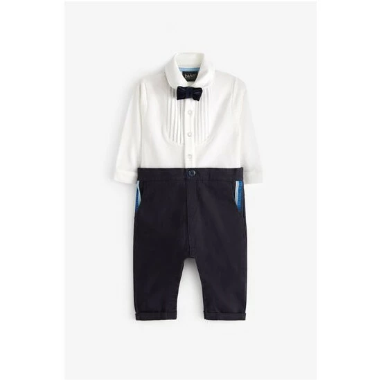 Romper Top 100% Cotton. Bottom 98% Cotton, 2% Elastane. Bow Tie 92% Polyester, 8% Elastane.