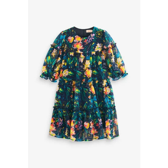 This gorgeous chiffon dress from Baker by Ted Baker is styled in a lovely tiered shape with comfortable cotton lining. Designed in an all-over floral print with pretty ruffle details and back button fastening.