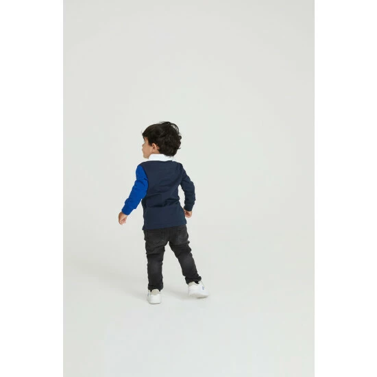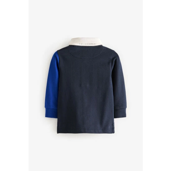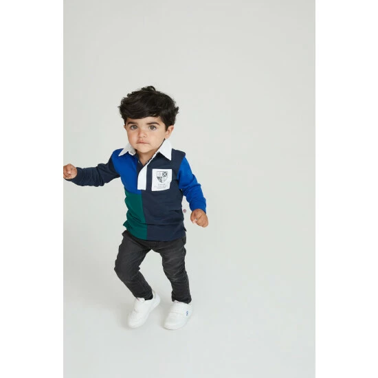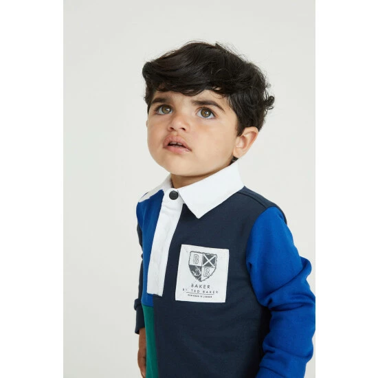 This long sleeve rugby style shirt from Baker by Ted Baker is made from cotton for softness and breathability. Designed in a colourblock pattern with smart white collar and button placket. Finished with a Baker branded chest patch.