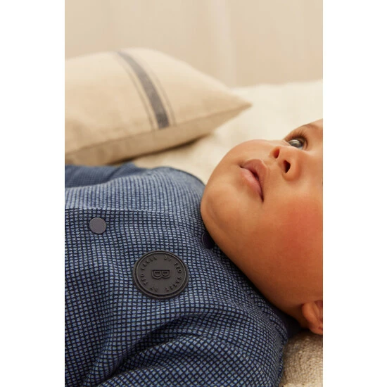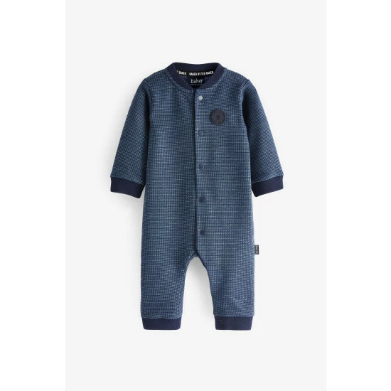 This textured blue romper from Baker by Ted Baker is super soft and super stylish. Designed in a thicker fabric to be cosy for your little one, with matte branded snaps and a chest badge.
