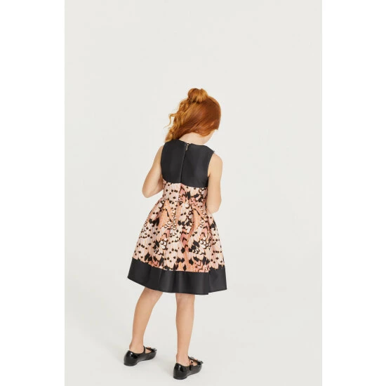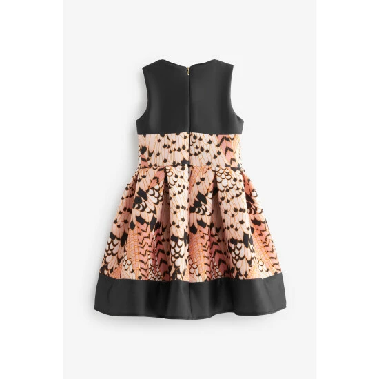 A charming dress from Baker by Ted Baker for your little lady to enjoy wearing. Made from a scuba fabric, this sleeveless fit and flare dress is covered with a bold feather print and finished with a hidden zip fastening at the back.