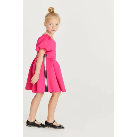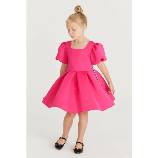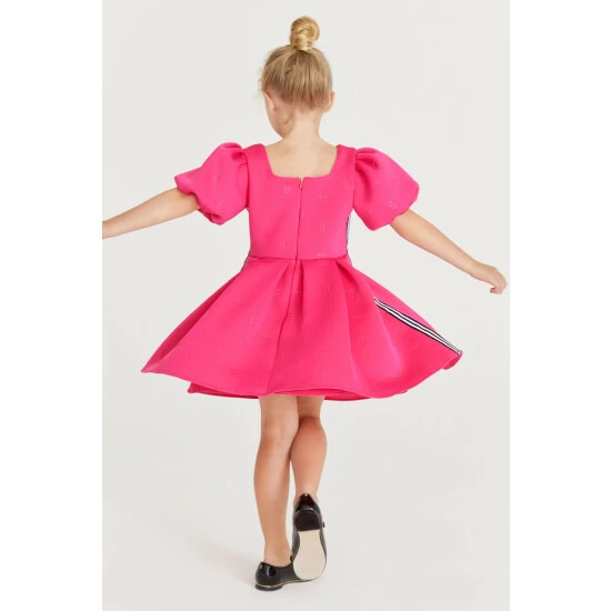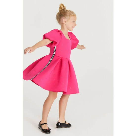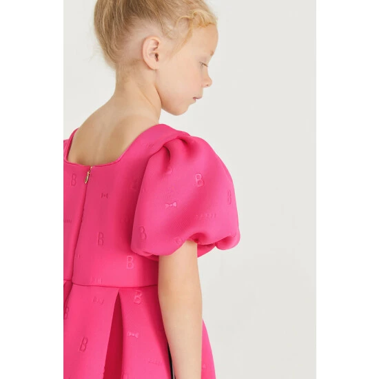 In a gorgeous scuba fabric, this statement-making pink dress from Baker by Ted Baker is designed with pretty frill sleeves and signature Baker branding. Perfect for twirling!