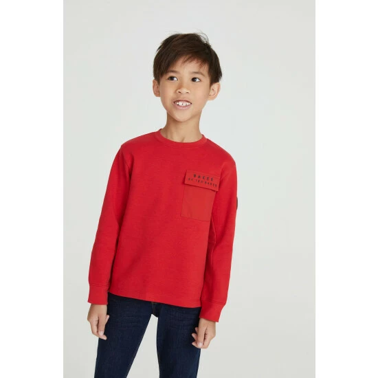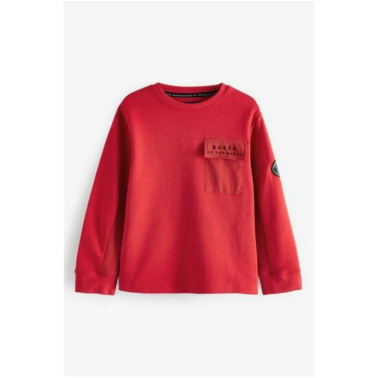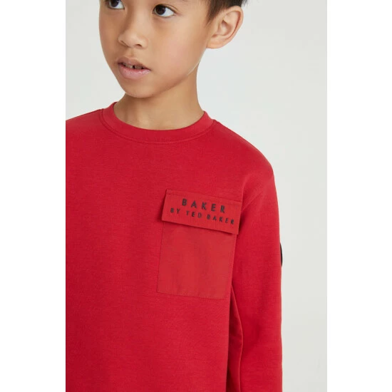 Perfect for play, this cheery top for boys from Baker by Ted Baker will be an excellent wardrobe staple. Made from a soft cotton and polyester blend, the rich red long-sleeve top also features a crew neck, a pocket on the chest with the brand stitched on in black, a further branded badge sewn onto the arm and a notched hemline for a comfortable loose fit.