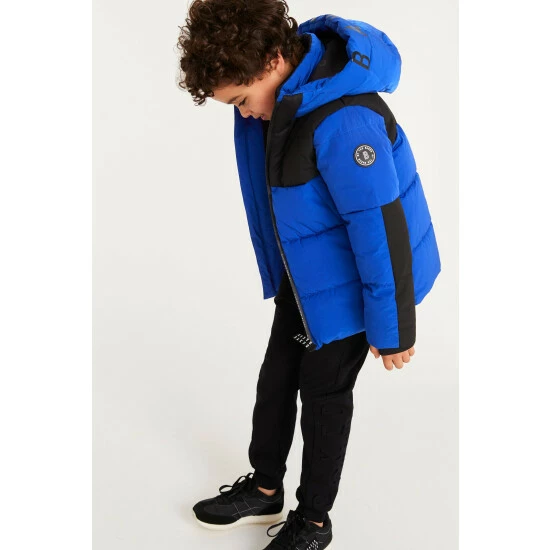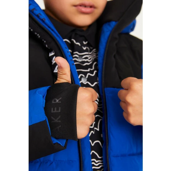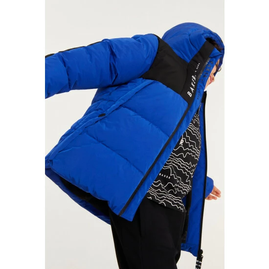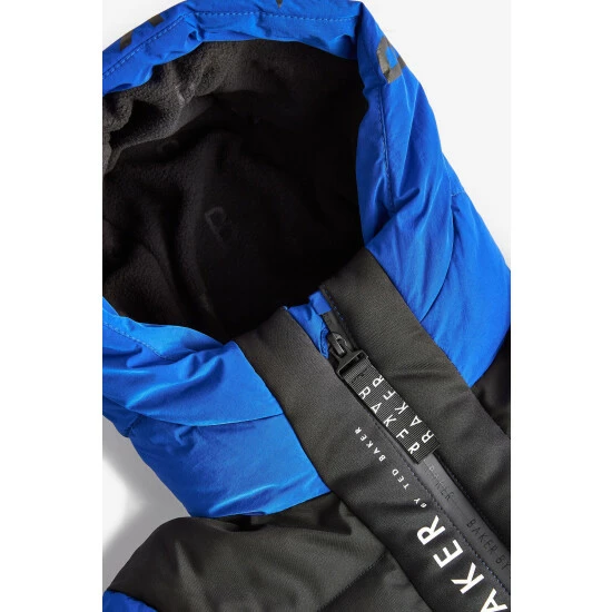 This blue padded coat from Baker by Ted Baker is designed in a windproof and shower resistant fabric in a heavyweight style. Featuring cosy fleece lined pockets and hood, storm cuffs and branded zip pulls and trims. Finished with fun internal graphics.