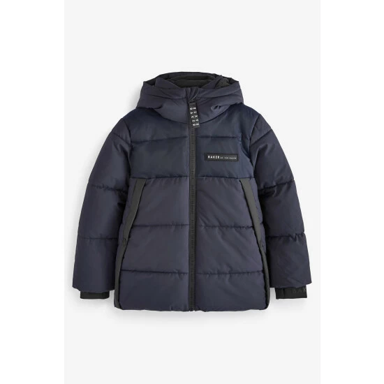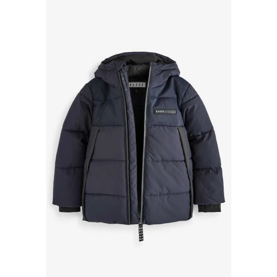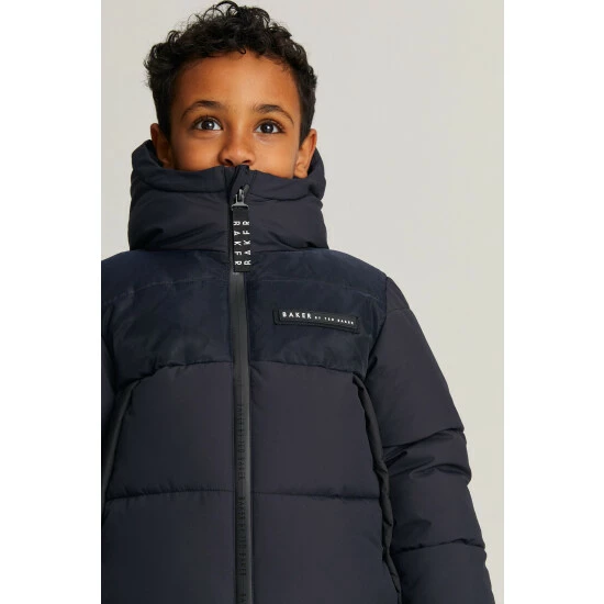 This red, padded coat from Baker by Ted Baker is designed in a windproof, shower resistant fabric in a warm heavyweight design. Featuring cosy fleece lined pockets, branded zip pull, storm cuffs, branded hood and branded chest badge.