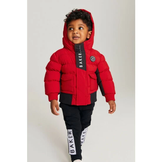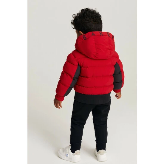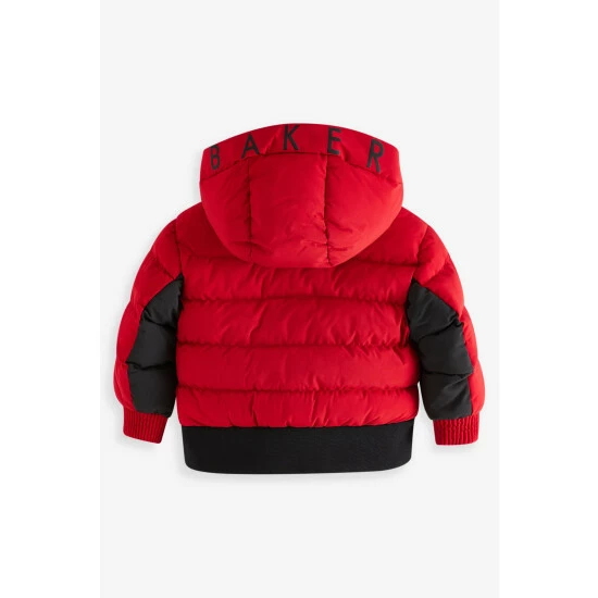 This bright puffer coat from Baker by Ted Baker is designed in a windproof and shower resistant fabric in a midweight style. Featuring ribbed cuffs, elasticated hem, branded zip pulls, hood with contrast Baker branding and fun internal graphics.