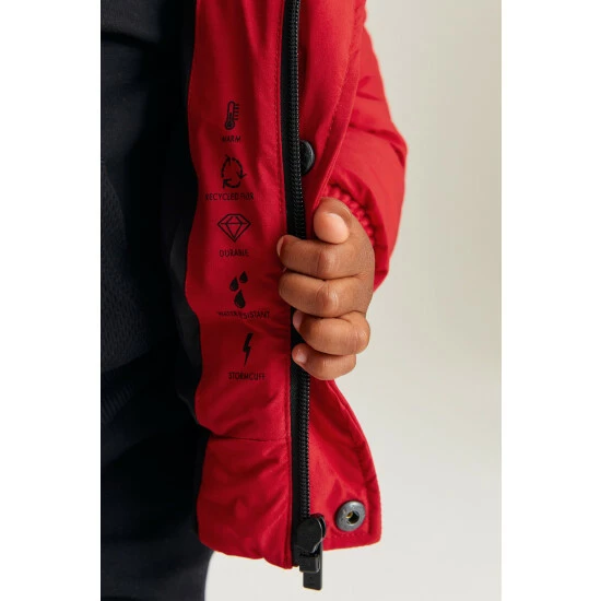 Shell 100% Polyester. Lining 100% Polyester. Wadding 100% Polyester. Rib 98% Polyester, 2% Elastane.